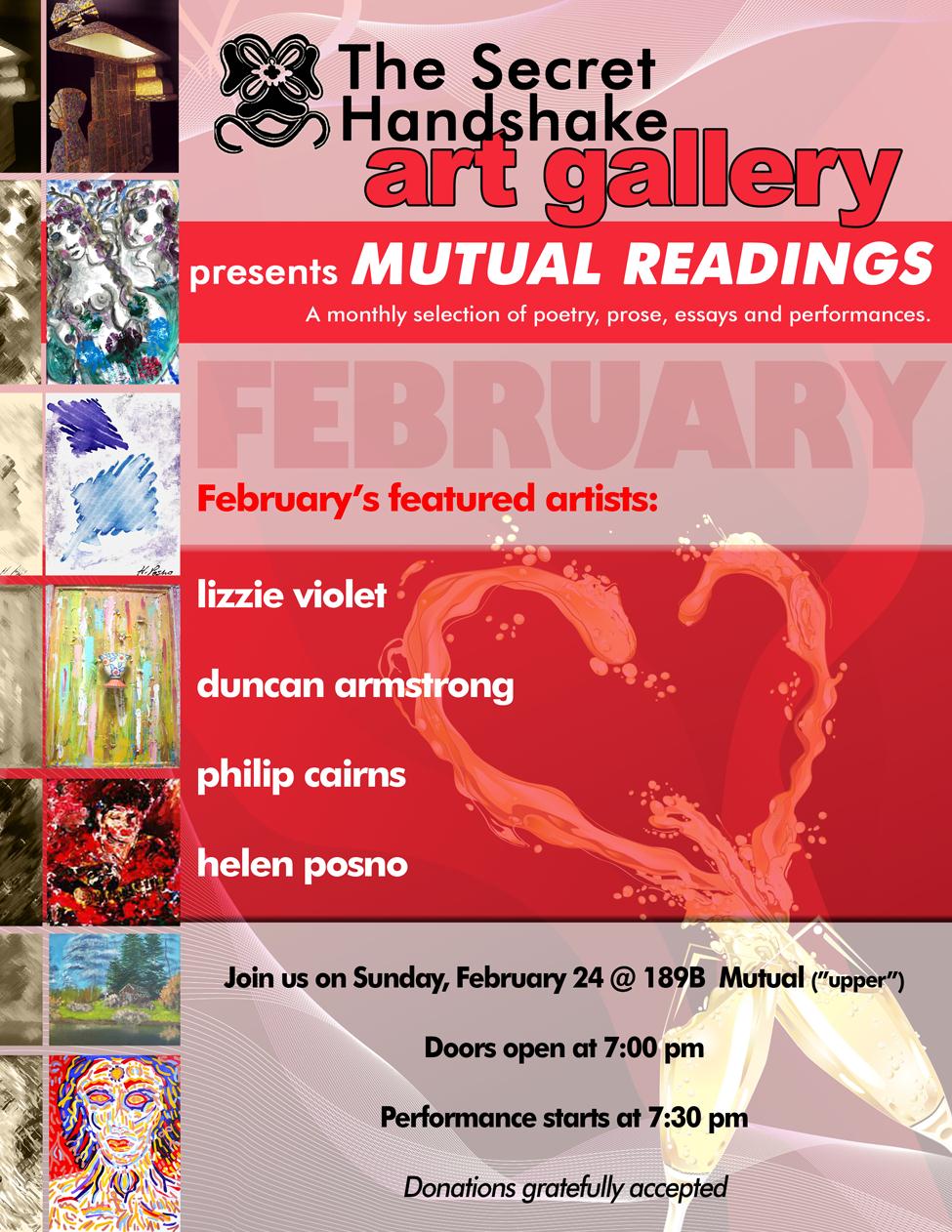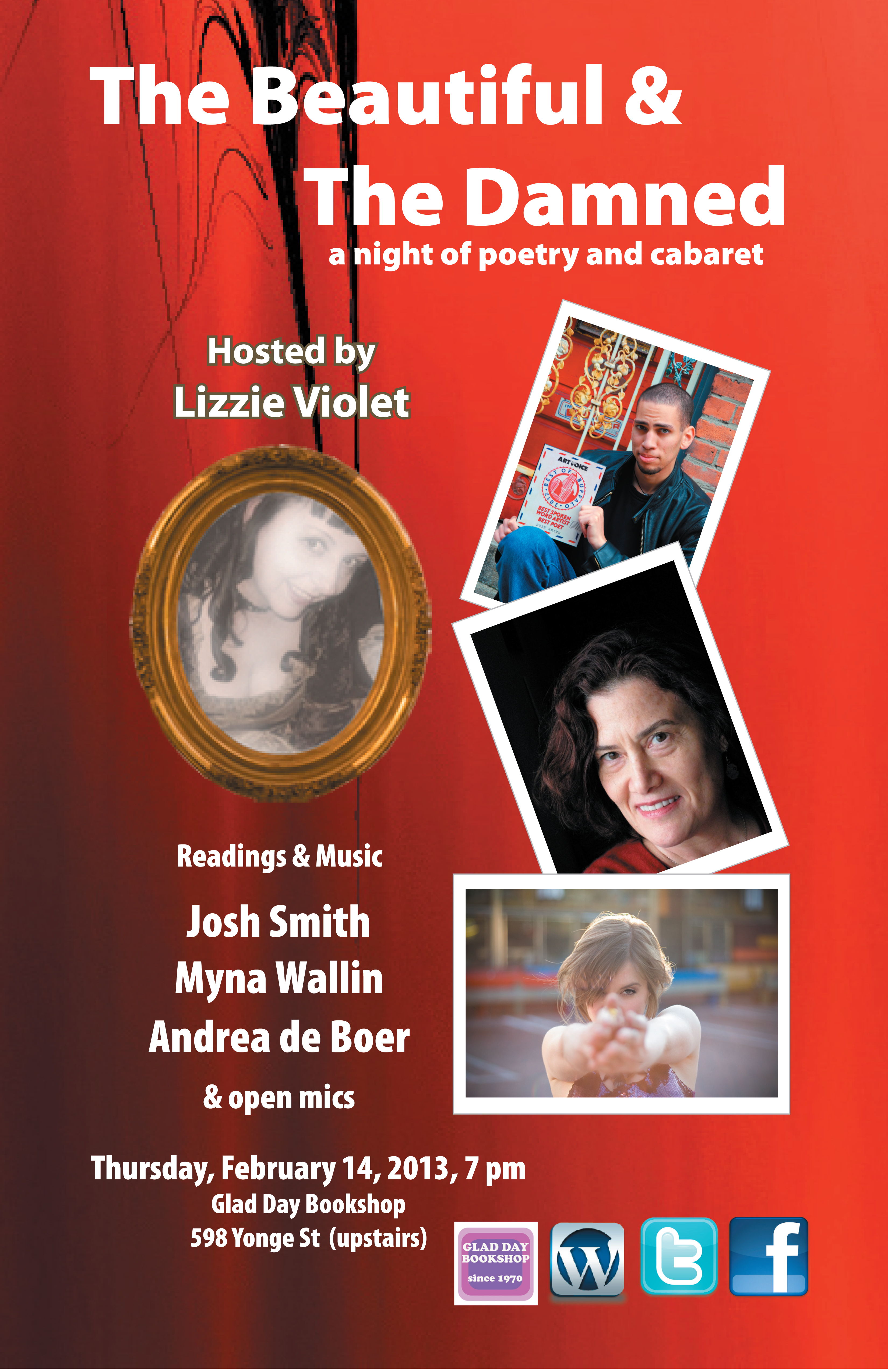 The Beautiful and the Damned is a Poetry Cabaret every second Thursday of the month at Glad Day Bookstore on Yonge Street (upstairs)).
